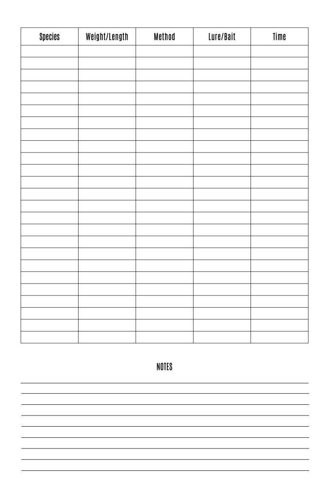 - Detailed notes on bait and lures used